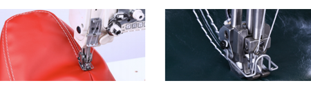 5.標(biāo)配10MM針位,氣動中分外壓腳,平衡補償內(nèi)壓腳。