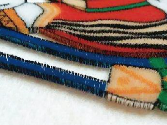 12、根據花版要求,預留不同的切線長度,刺繡出立體三維造型,繡線根根直挺,圖案清晰凸顯,手感柔軟細膩,富有彈性,耐水洗,耐揉壓。